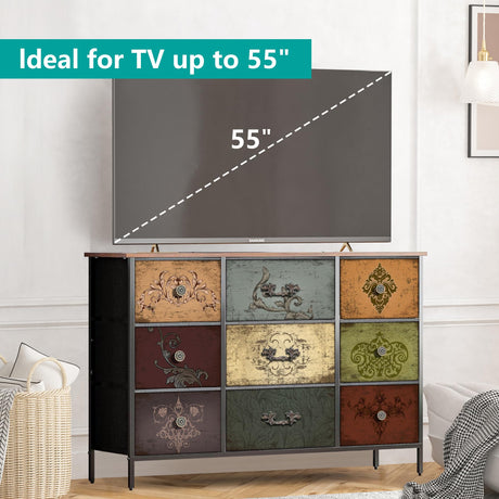 Dresser for Bedroom with 9 Deep Fabric Drawers, Wide TV Stand Storage Cabinet,