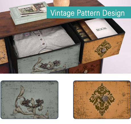 8 Drawer Dresser for Bedroom, Industrial Wood Dresser Wide 8 Chest of Drawers,