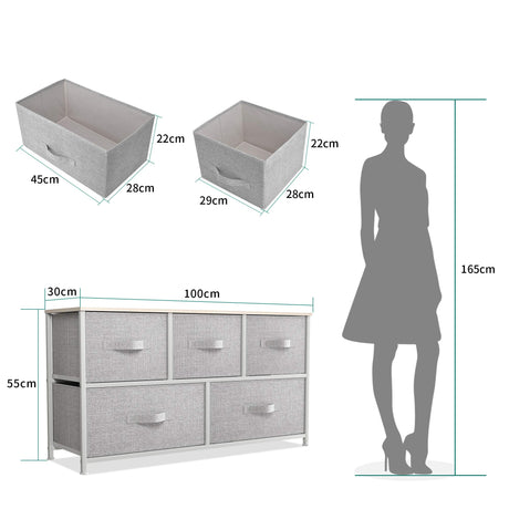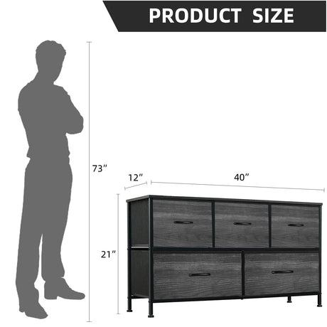 Dresser for Bedroom Dresser TV Stand with 5 Storage Drawers, Small Fabric Dresser