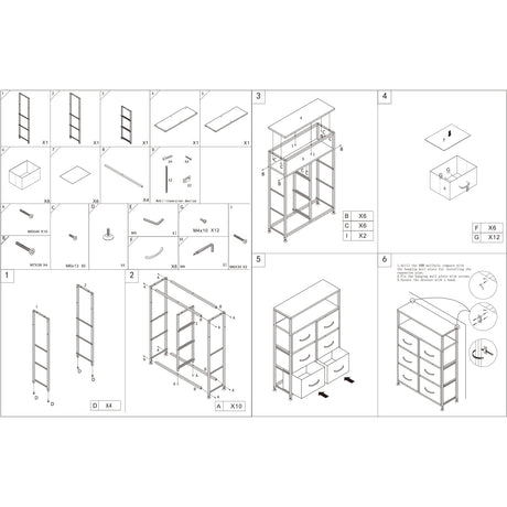 38.31" High Steel Frame/Wood Top Storage Dresser Furniture Unit with 8 Removable