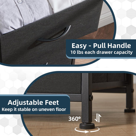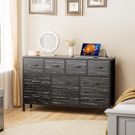 Black Dresser for Bedroom with Charging Station and 10 Drawers, Large Fabric Chest