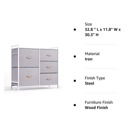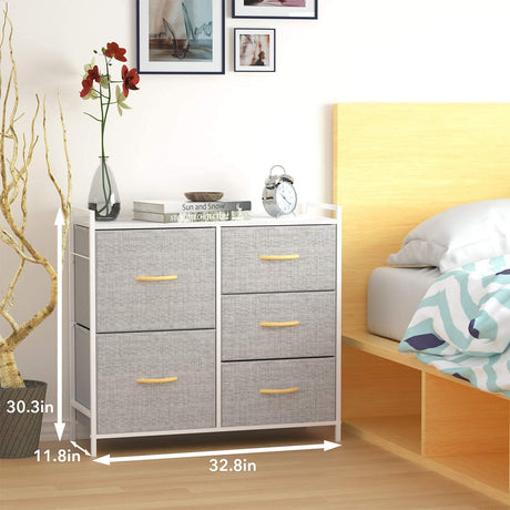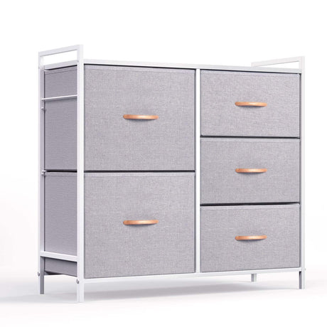 Dresser for Bedroom, 5 Chests of Drawers, Dresser for Closet with Fabric Bins,