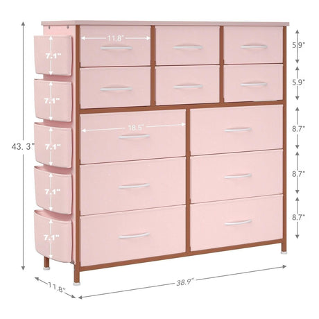 12 Dresser for Bedroom, Chest of Drawers for Bedroom with Side Pockets and Hooks