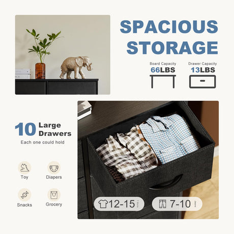 Fabric Dresser for Bedroom, Storage Drawer Unit,Dresser with 10 Deep Drawers