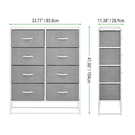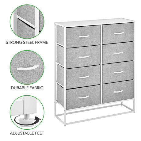 Wide Modern 8-Drawer Dresser Storage Unit, Sturdy Steel Frame, Wood Top,
