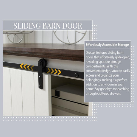 Farmhouse 5 Drawers Dresser for Bedroom, 47" Tall Chest of Drawers w/Sliding Barn Door,
