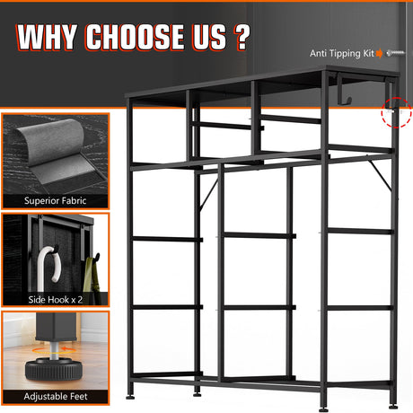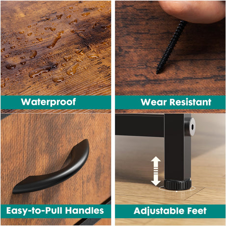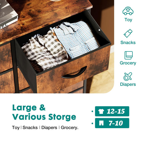 Dresser for Bedroom with 10 Drawers, Chest of Drawers with Side Pockets, Hooks