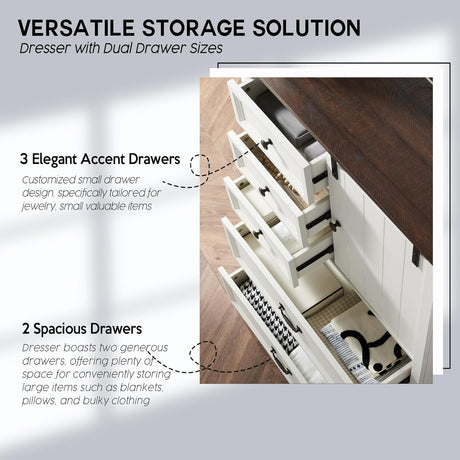 Dresser for Bedroom Wood Dresser with 7 Drawers White Dresser with Smooth Metal Rail Long