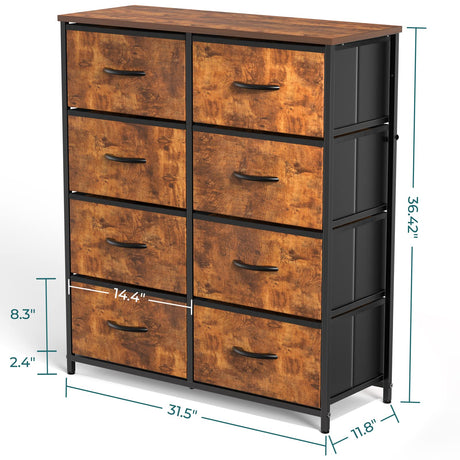 Dresser with 8 Drawers - Chest Organizer Unit with Steel Frame Wood Top & Handle Easy