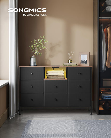 Dresser with Power Outlets and LED Lights