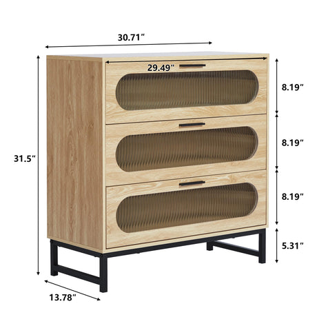 3 Drawers Dresser, Wooden dresser with Tempered Glass Drawers and Metal Handle