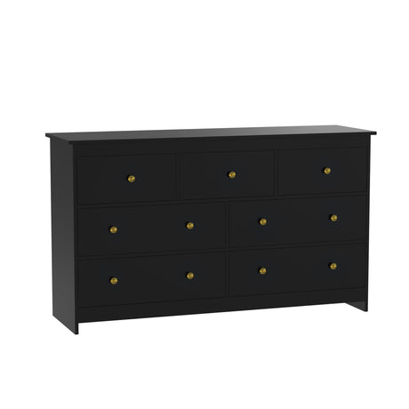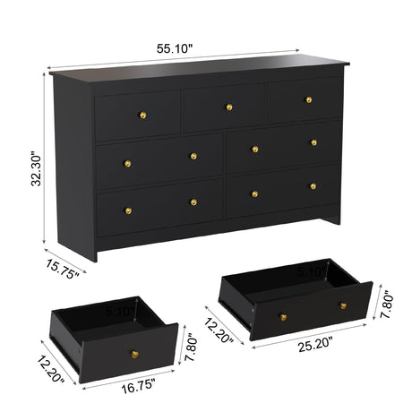 Dresser for Bedroom, 7 Drawer Dresser, Black Dresser with Gold Handles