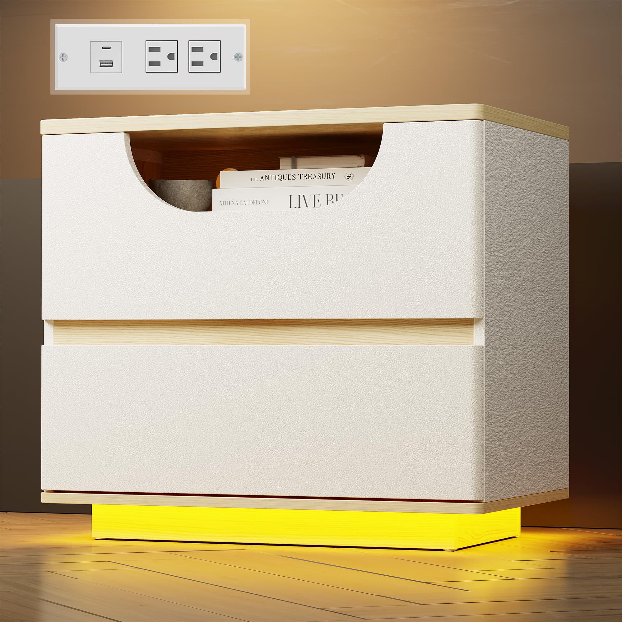 Nightstand with Charging Station, 22” Wide Bedside Table
