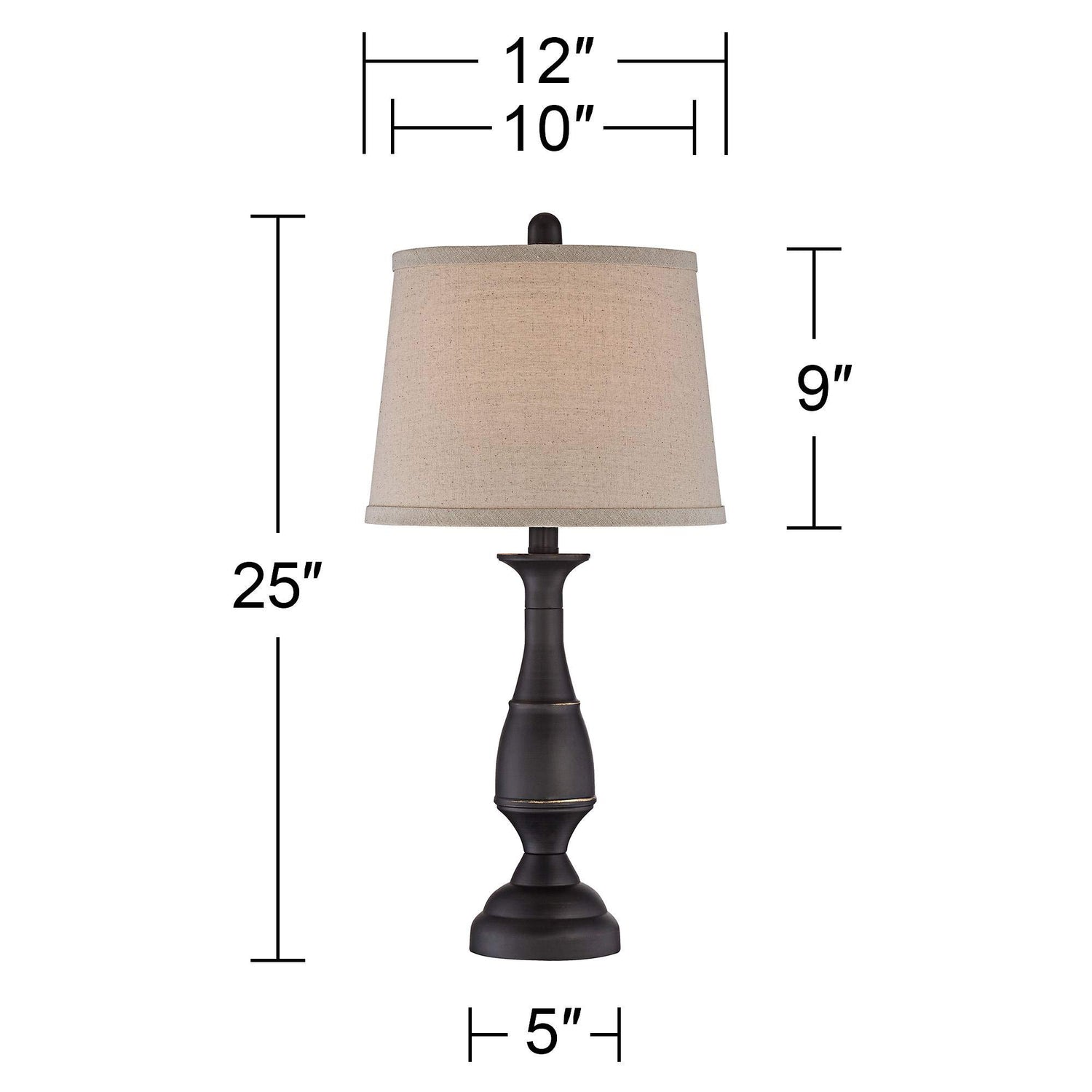 Regency Hill Ben Farmhouse Traditional Table Lamps 25" High Full Size Set of 2 Dark Bronze Brown Metal Beige Linen Drum Shade Decor for Living Room Bedroom House Bedside Nightstand Home Office