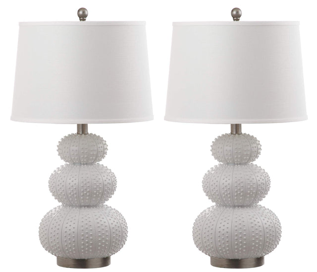 SAFAVIEH Lighting Collection Rita Modern Contemporary White Triple Gourd Studded 29-inch Bedroom Living Room Home Office Desk Nightstand Table Lamp Set of 2 (LED Bulbs Included)