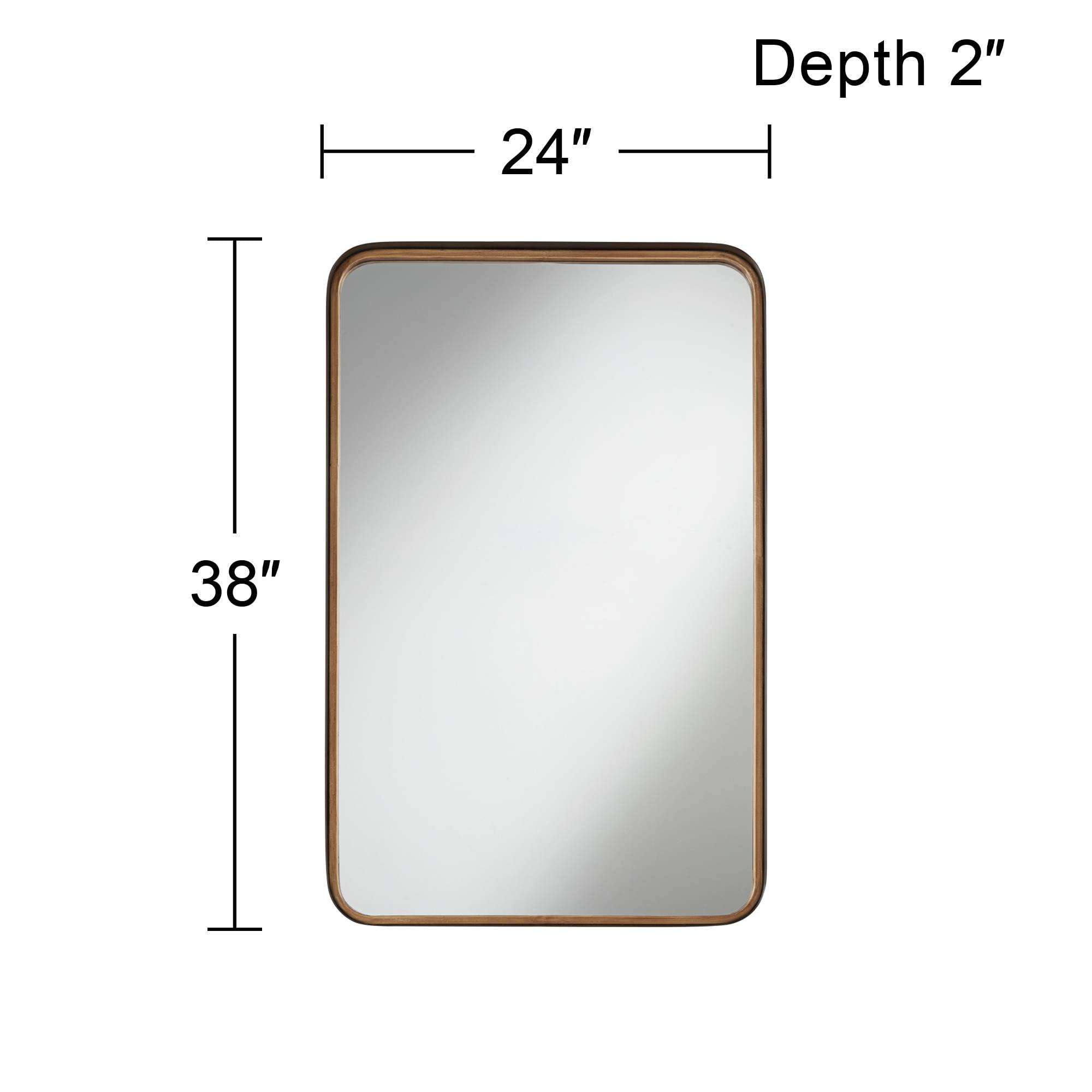 Uttermost Rounded Corner Rectangular Vanity Decorative Wall Mirror Modern Rustic Gold Black Iron Frame Beveled Edge 24" Wide for Bathroom Bedroom Living Room Home House Office Entryway