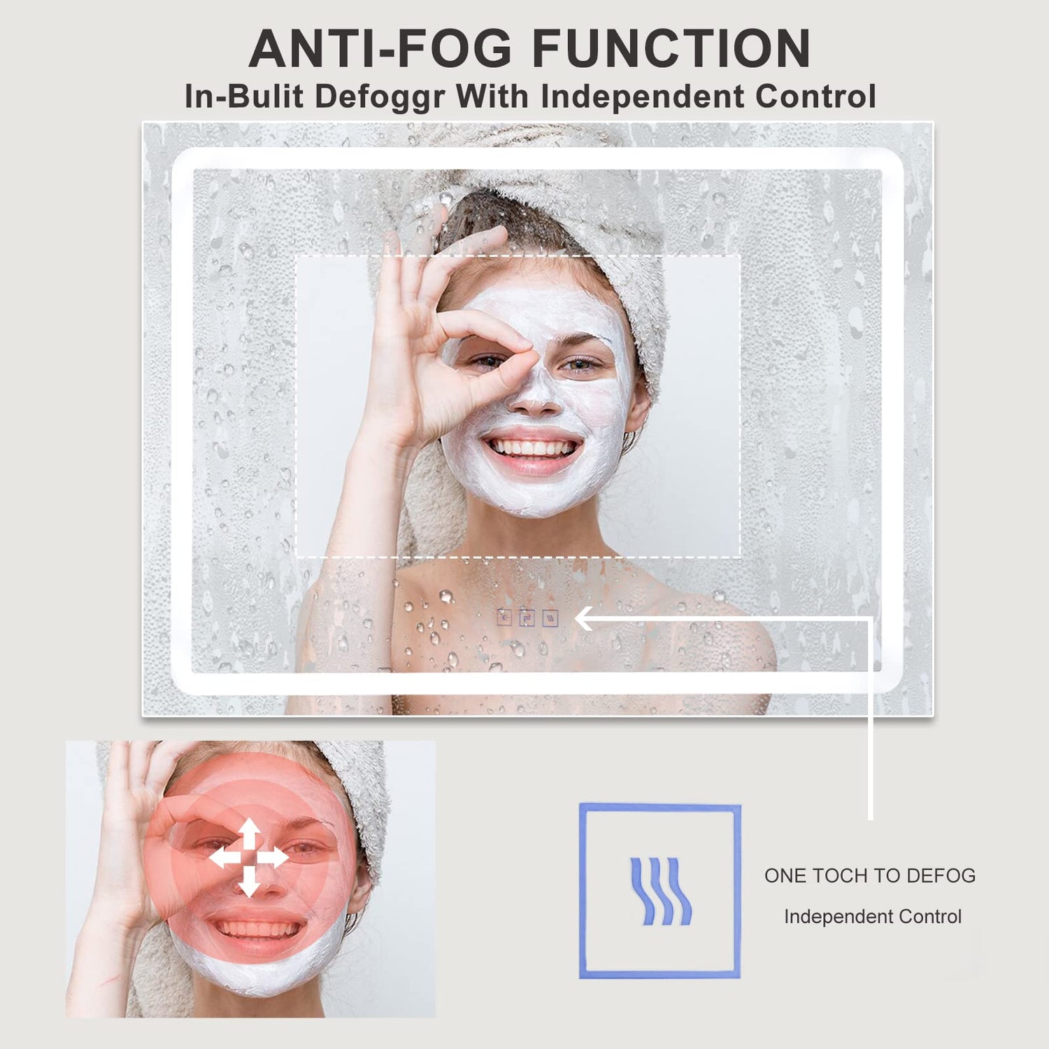 - Anti-Fog Function: Built-in defogger ensures the LED vanity mirror stays clear and fog-free. The anti-fog switch is a separate control, which is safe and energy-saving. You can turn it on and off according to your need.