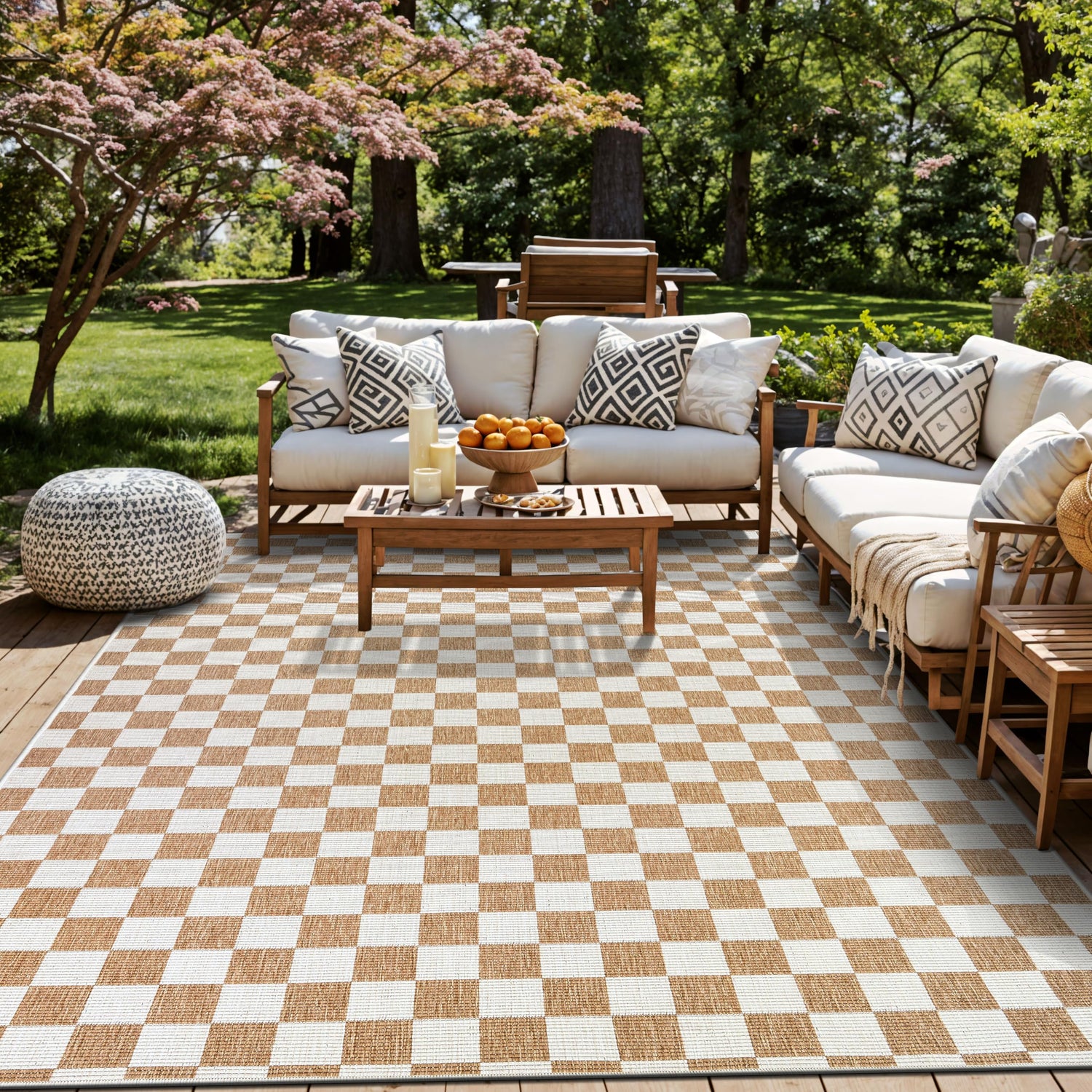 Contemporary Checkered Weather Resistant Reversible Indoor/Outdoor Area Rug 5' x 7' Natural