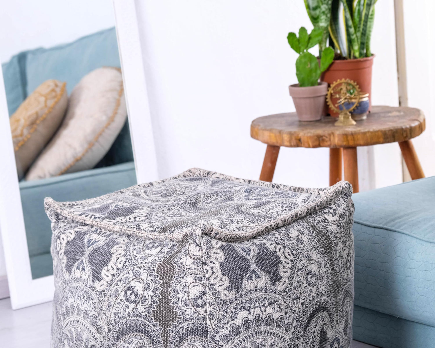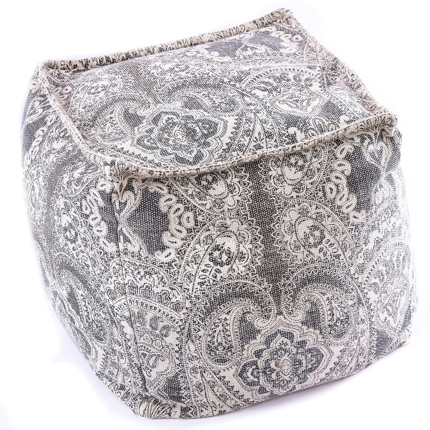 ART Parsley Gray Cube Bean Bag Cover- 20x20x20 inches –Luxury Pouf Ottoman, Room
