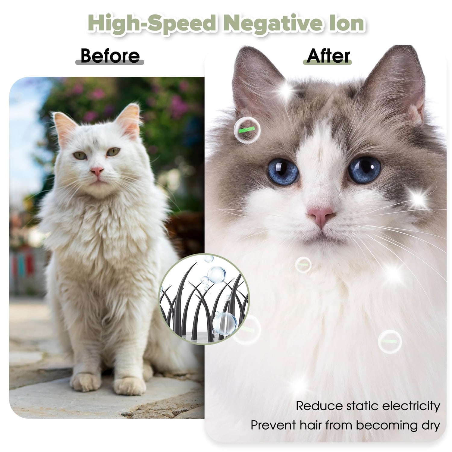 - Negative Ion Technology: Reduces static, prevents fur dryness, and enhances coat shine