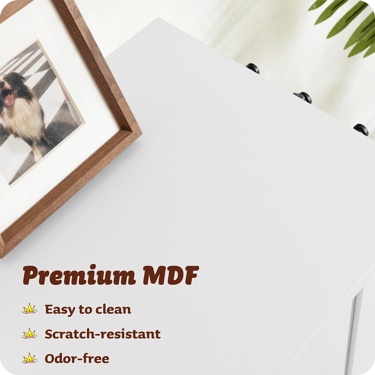 - Comprehensive Storage: Cabinet space for food and treats, tabletop for toys and accessories, side hooks for leashes and collars