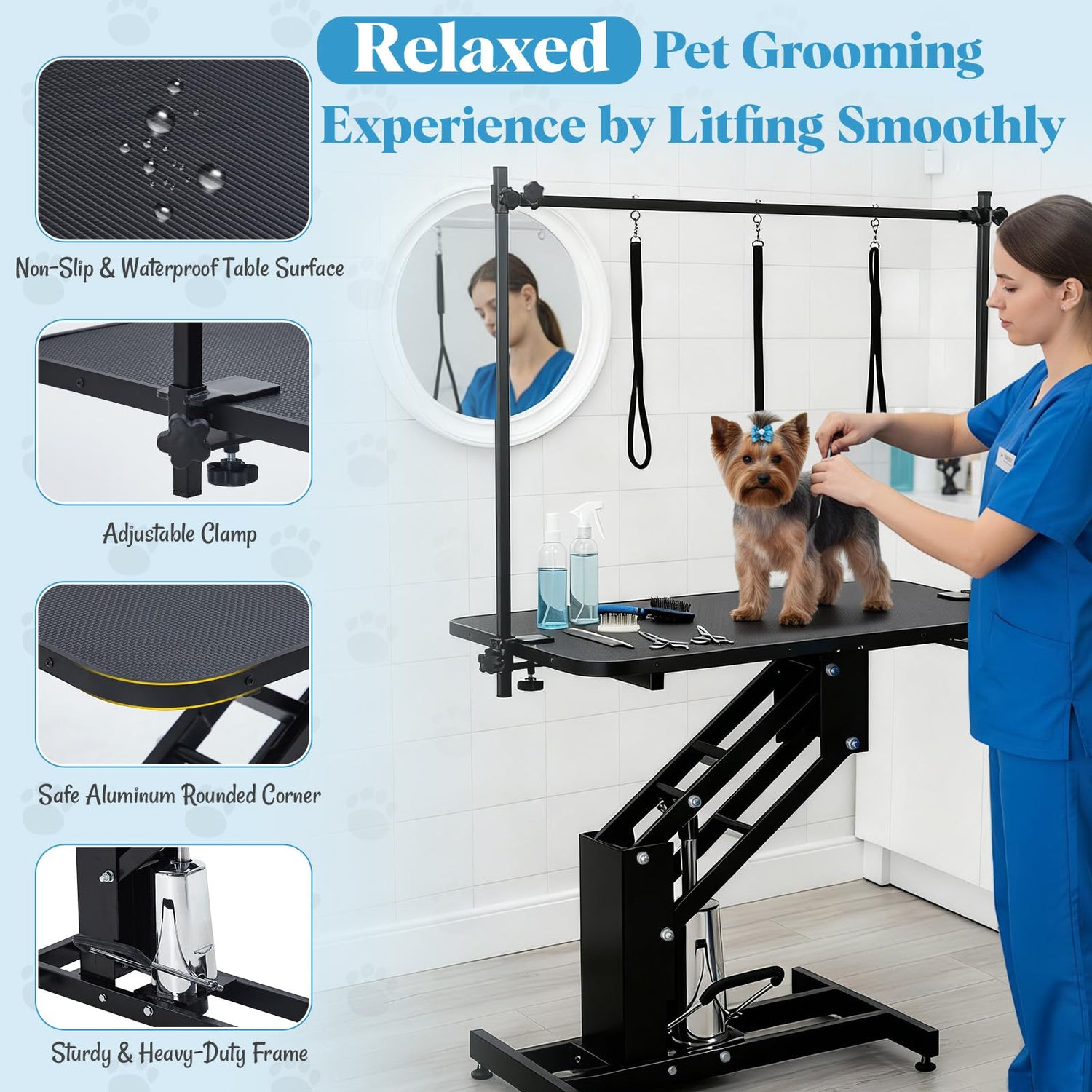 43.3" Hydraulic Dog Grooming Table - Heavy Duty 350lbs Capacity with Adjustable Arm