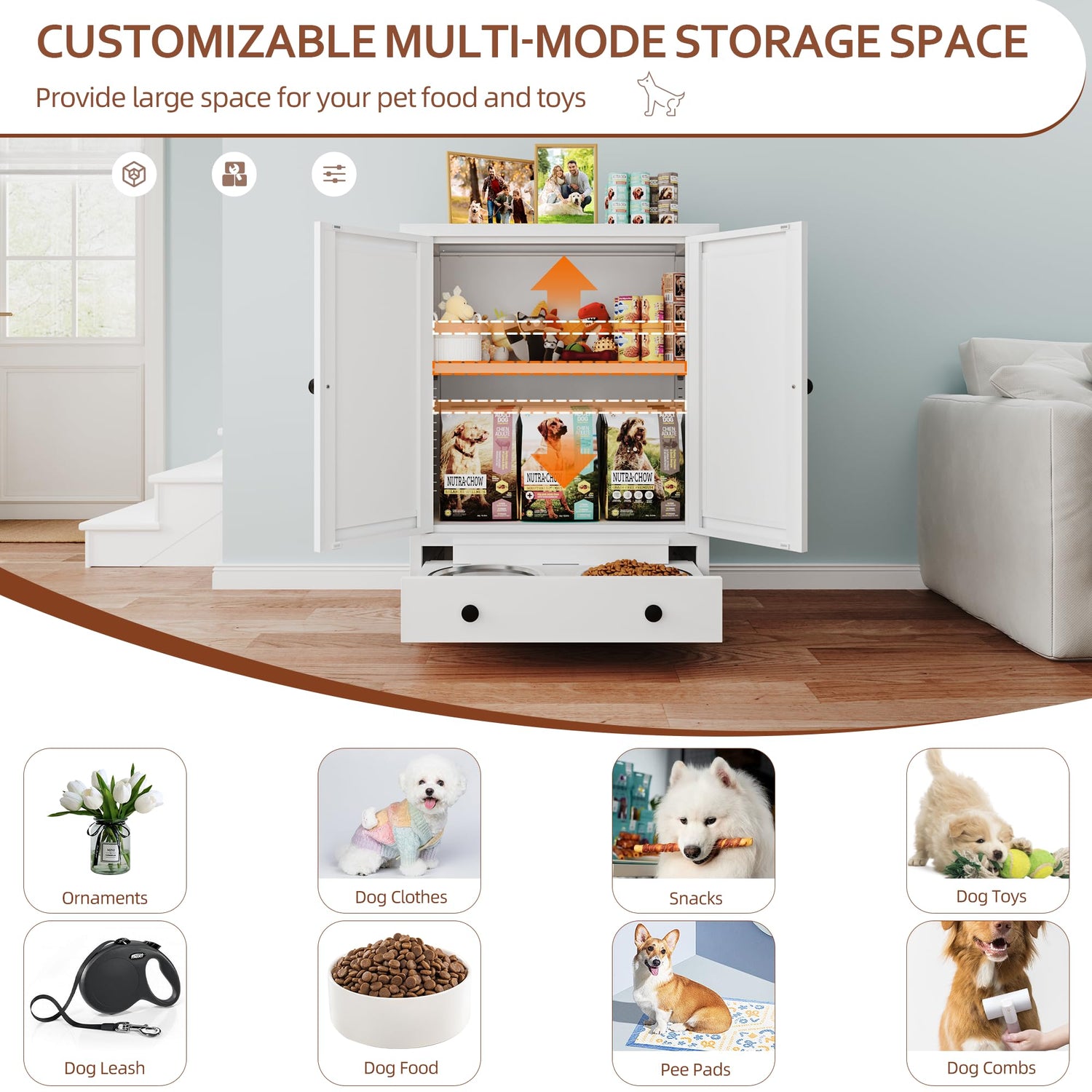 Perfect for pet owners who value organization and their dog's comfort, this feeding station seamlessly integrates into any home décor while providing a dedicated space for all your pet's dining essentials.