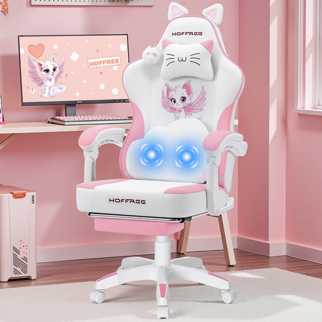 Experience ultimate comfort and style with this premium pink gaming chair, featuring a unique cat ear headrest design and cloud-pattern massage lumbar support. Perfect for extended gaming sessions, work-from-home setups, or streaming, this ergonomic chair combines functionality with playful aesthetics.