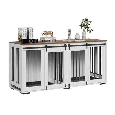 72" Double Dog Crate Furniture with Sliding Doors & TV Stand