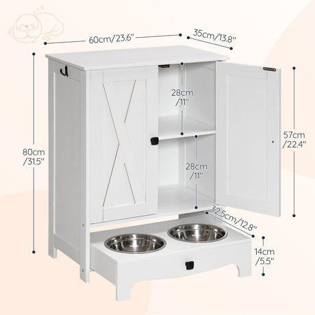 Dog Feeding Station with Storage Cabinet & Elevated Bowls