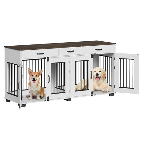 71" Double Dog Crate Furniture with Storage Drawers