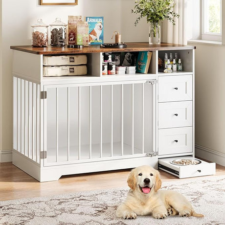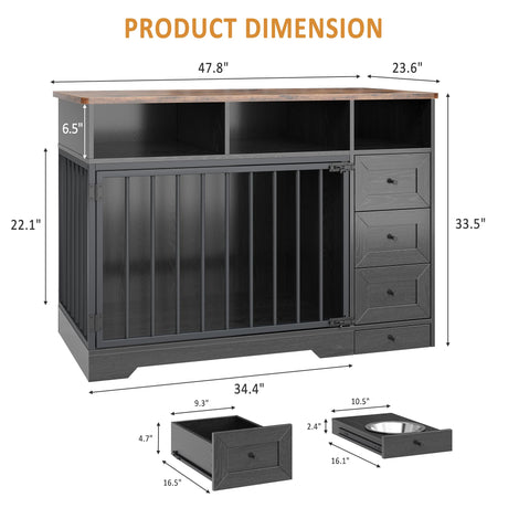 48" Farmhouse Dog Crate Furniture with Storage Drawers
