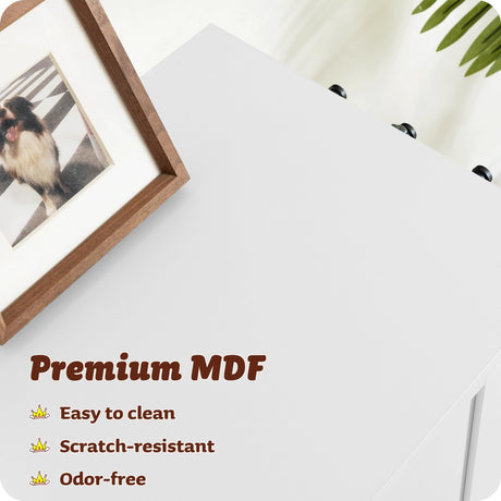 White Wooden Dog Crate Furniture with Storage Shelf & 4 Hooks