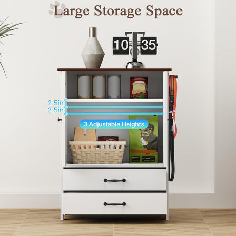 Elevated Dog Feeding Station with Storage Cabinet & Leash Hooks