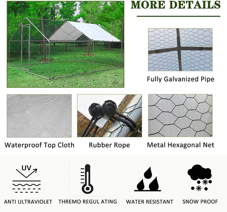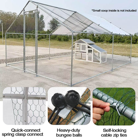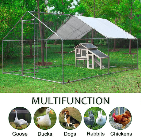 Large Chicken Run Metal Chicken Coops with Chicken Perch, Outdoor Walk-in Poultry