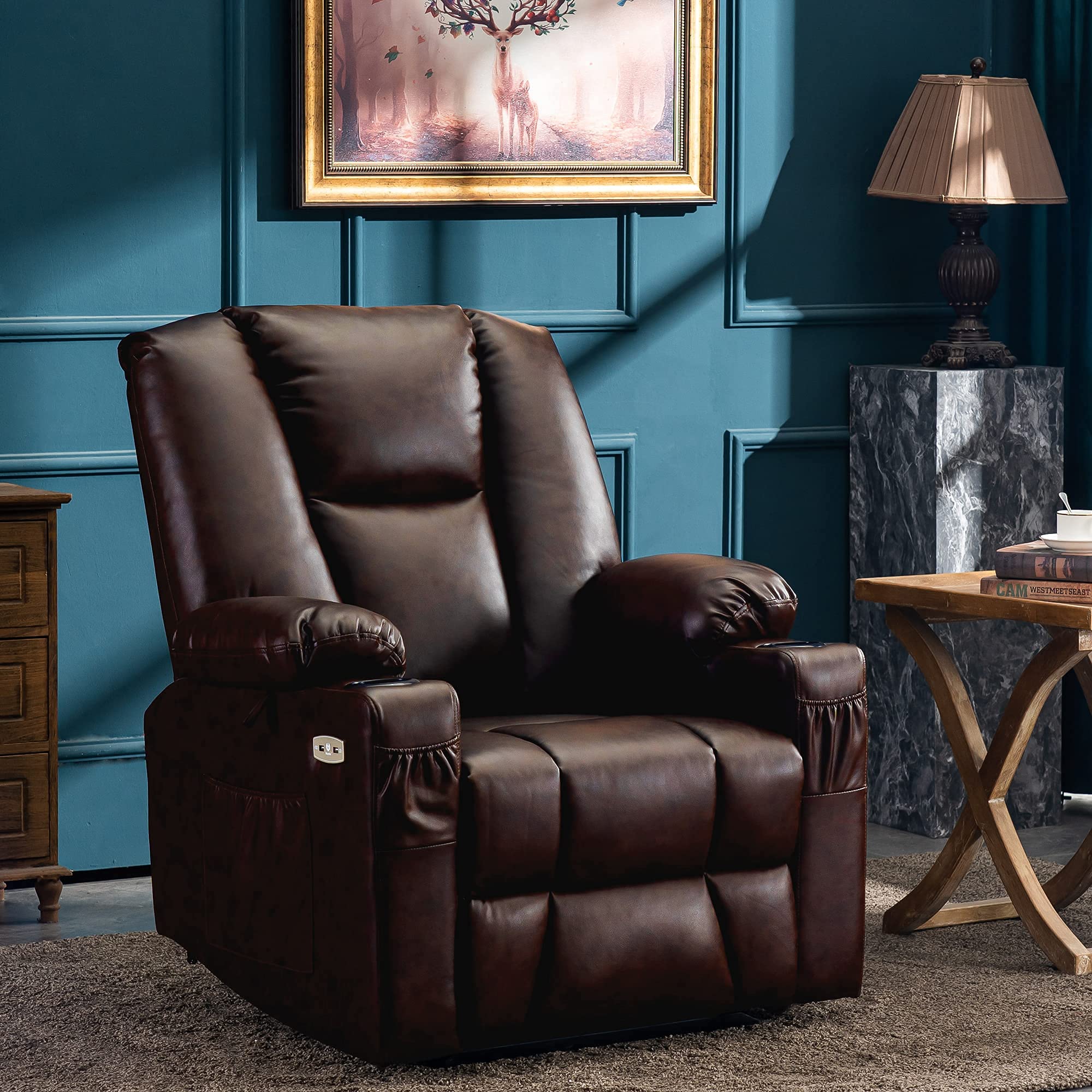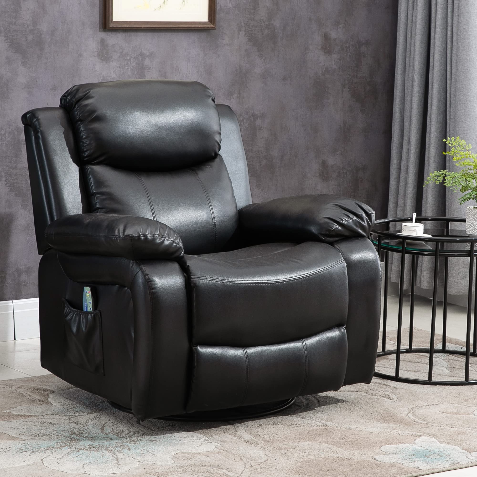 TheraLuxe 8-Point PU Leather Swivel Rocker Recliner with Remote & Massage