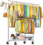 • 100% STAINLESS STEEL & 960 LBS CAPACITY &RUST-FREE! Made from stainless steel, our rolling clothes rack holds an industry-leading 960 lbs-50% stronger than other racks. Thickened rods confidently hang 350+ heavy garments without bending, breaking, or tipping. The stainless steel keeps clothing racks with wheels looking new for years, free from chipping, rusting, or corrosion. This closet rack is ideal for hanging clothes in bedroom, dorms, laundry room, or as a commercial rack for retail store.