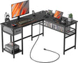 L Shaped Desk with Power Outlets, Computer Desk with Drawer, Reversible Corner Desk