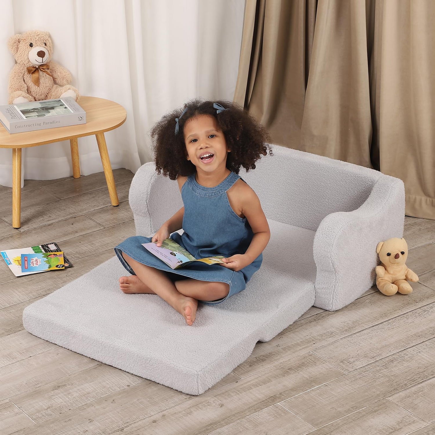 - ddler Couch Fold Out: The 2-in-1 extra wide flip sofa chair easily convert into nap mat. Provide a little world for kids to read, play and enjoy themselves