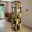 •  Featuring 5 tiers with a distance of 11.81 inches between shelves, this bookshelf offers generous space for books, plants, and decorative items. Perfect for organizing any space. Perfect as swivel bookshelf, black rotating bookshelf or 5 tier rotating bookshelf.