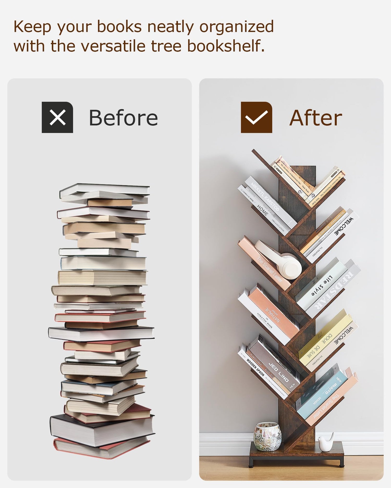 - 10 Tier Tree Bookshelf: The 10-tier bookshelf offers excellent storage choices for your books, movie collection, magazines, CDs, and also serve as a display shelf in your room