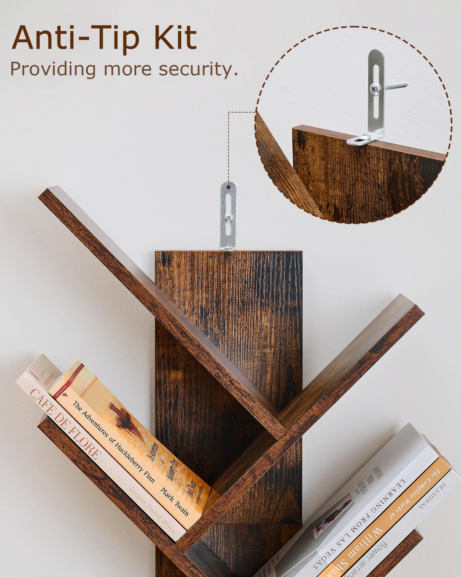 10 Shelf Tree Bookshelf, Floor Standing Wood Bookshelf for Books/Magazine/CDs/Movies, Modern Storage Rack Tree Bookcase, Utility Organizer Shelves for Narrow Space Home Office, Rustic Brown - Rustic is backordered and will ship as soon as it is back in stock.