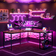 L-Shaped Computer Desk, Industrial Corner Desk Writing Study Table with Storage Shelves, Space-Saving, Large Gaming Desk 2 Person Table for Home Office Workstation, Rustic Brown/Black - Rustic Brown is backordered and will ship as soon as it is back in stock.