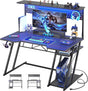 Gaming Computer Desk with Shelves and Outlets, Gaming Desk with Hutch and LED Lights