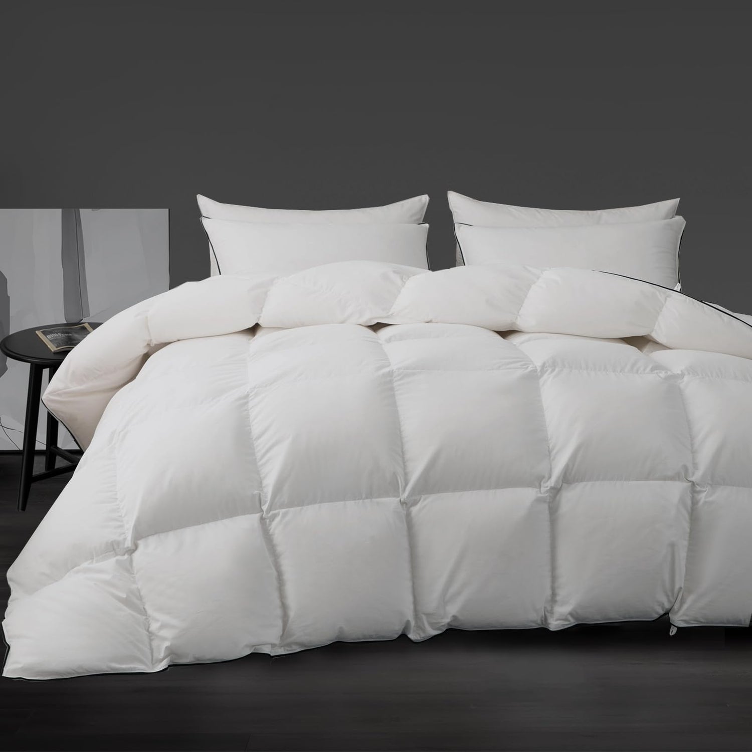 Luxury White Goose Down Comforter - Down and Feather Fiber Core for All Seasons