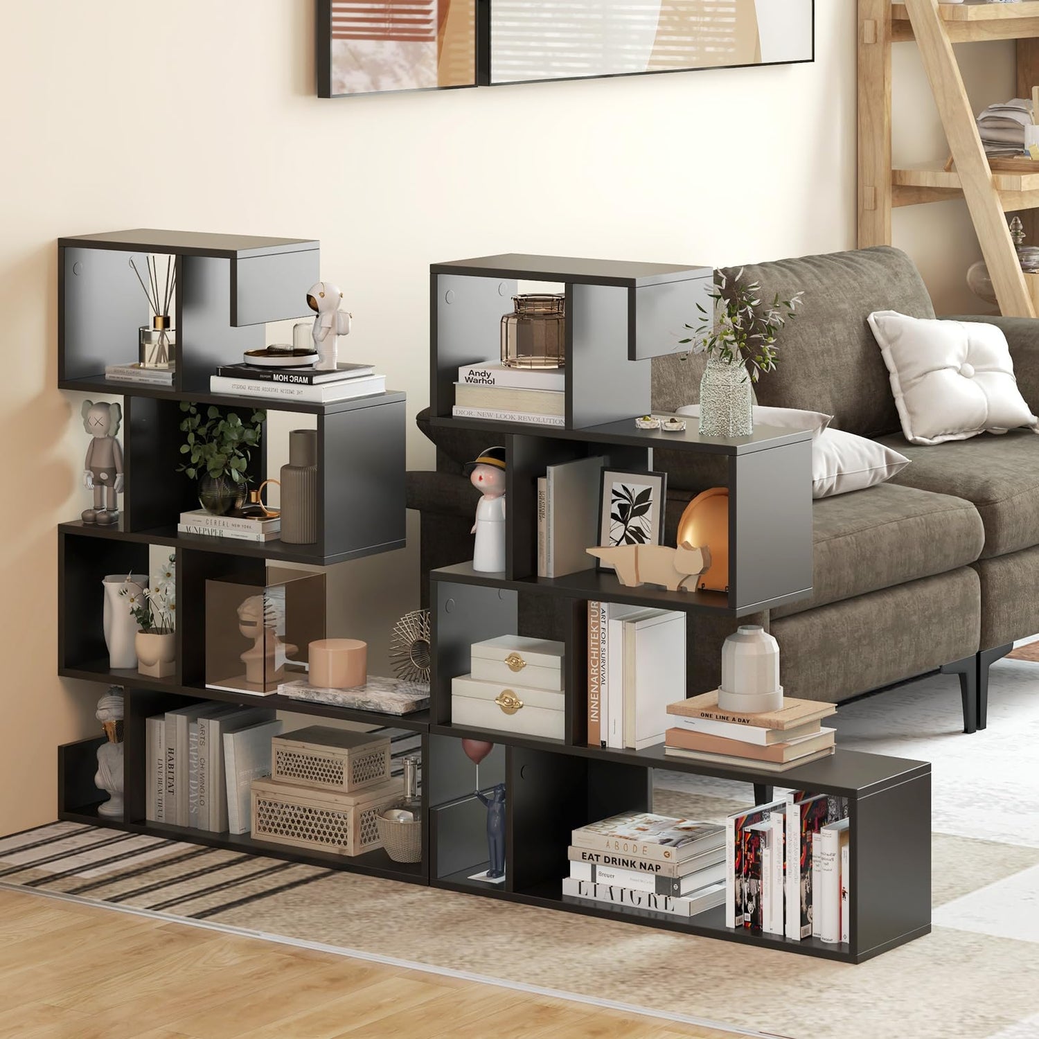 • 【Unique Stair Appearance】Make a statement with this geometrically designed cube bookcase. Its open and baffled shelves are staggered, creating a one-of-a-kind storage and decorative piece for any room.