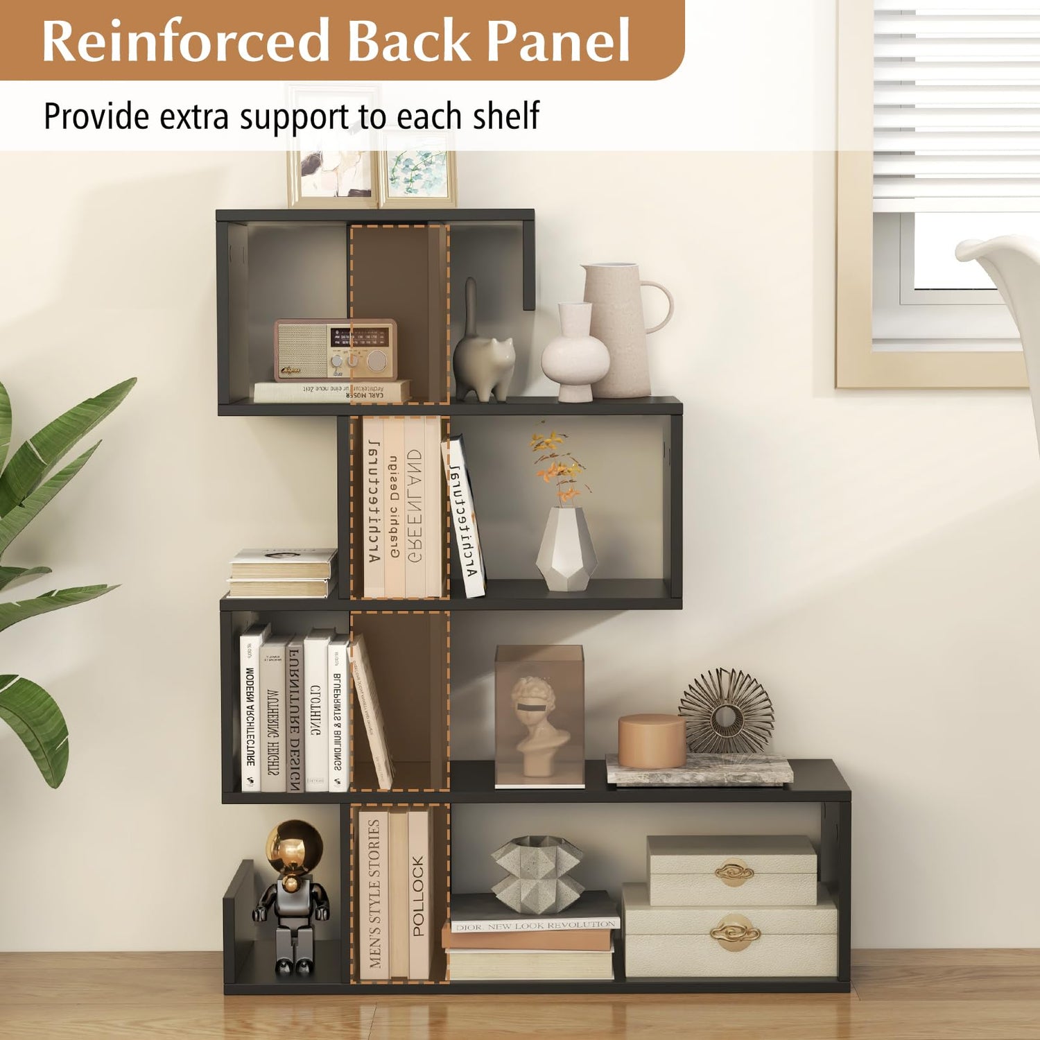 IFANNY S-Shaped Bookshelf, Geometric Bookcase with Open Shelves, 5 Tier Display Shelf, Modern Shelving Unit, Wood Standing Shelf, Book Shelf for Bedroom, Living Room, Study (Black)