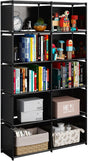 6-Tiers Portable Bookshelf with Fabric Cloth at Back, 10 Cube Closet Storage Organizer Bookcase