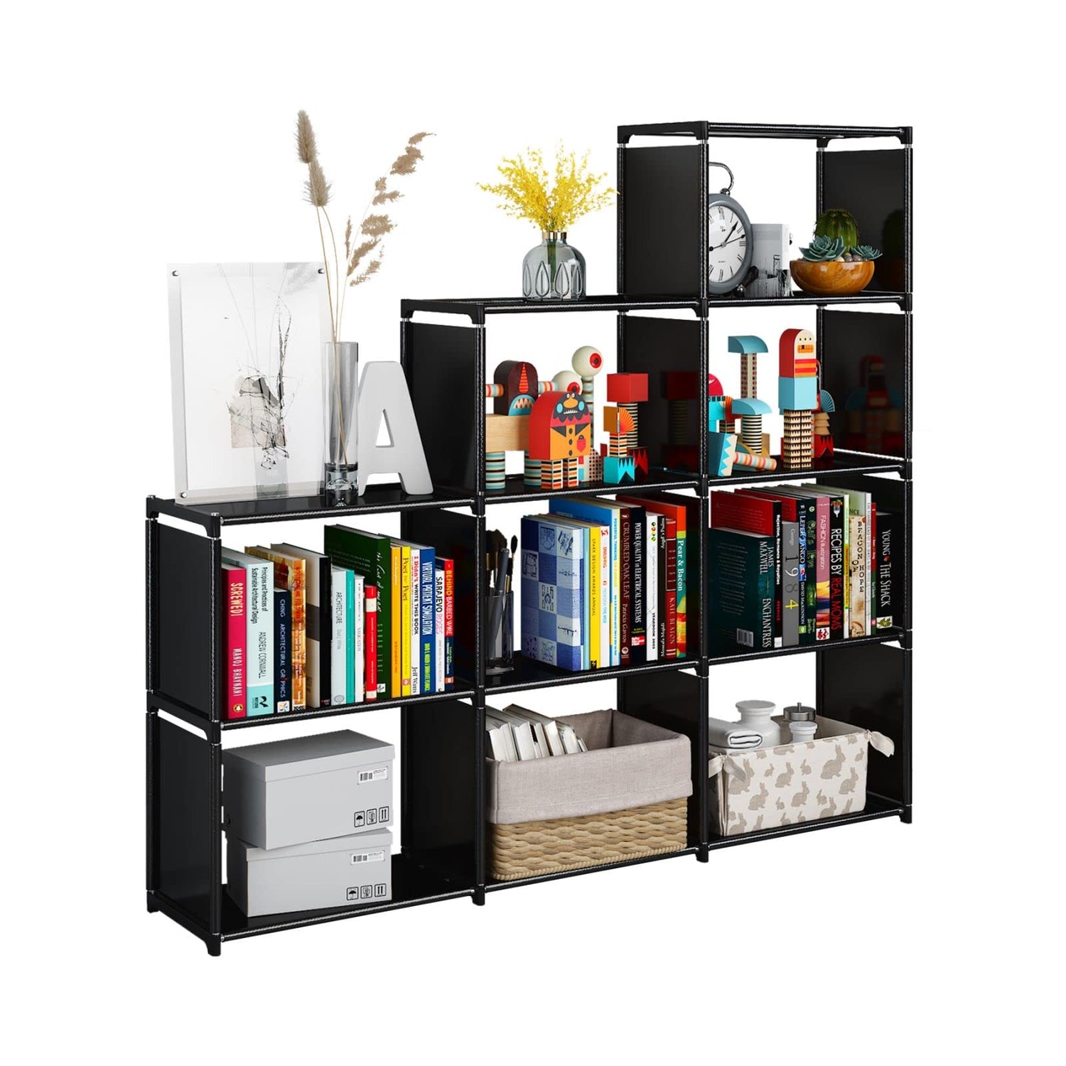 Portable Bookcase, 9 Cube Closet Storage Organizer Bookshelf,Clothes Storage for Living Room,Study Room,Bedroom, Black