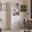 70.9" Tall Bookcase with 4 Shelves and 2 Drawers,2 AC Outlets & 2 USB Ports,Bookself with Adjustable Tiers,Wooden Storage Organizer for Dining Room,Living Room,Bedroom,Home Office,White - 3 Shelves and 3 Drawers is backordered and will ship as soon as it is back in stock.